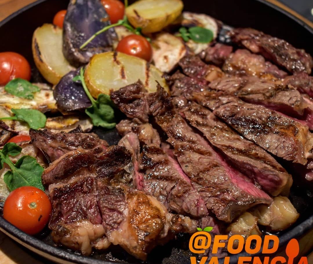 - Entrecote de vaca rubia gallega taqueada y punto.