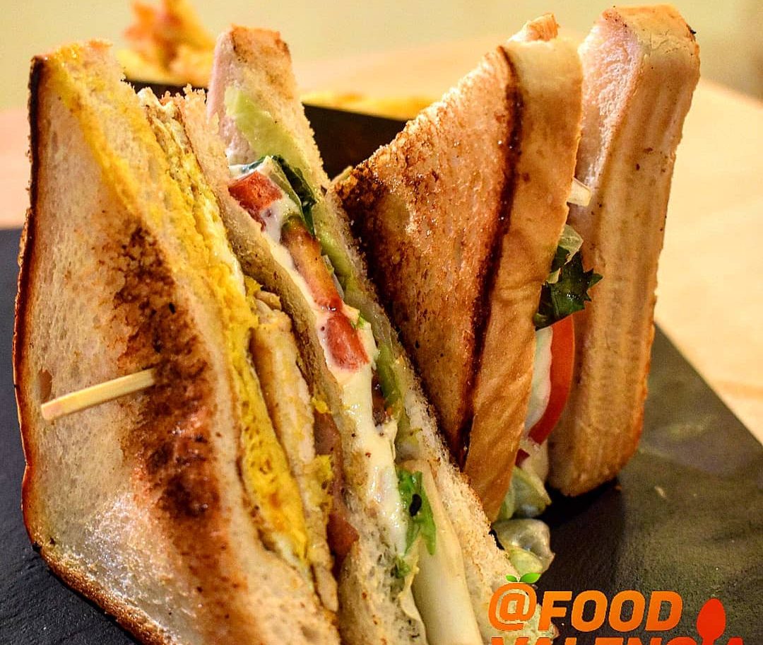 - American Club Sándwich: Pollo asado, mayonesa, lechuga, huevo, tomate, bacon y maíz dulce!