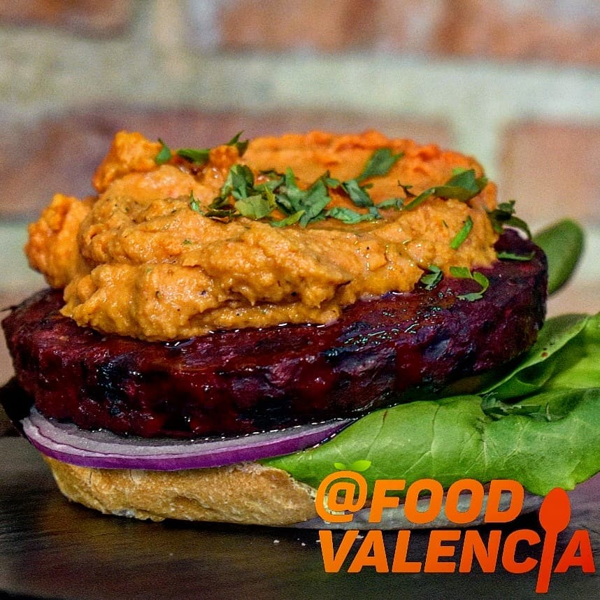 • Veggie Burger: armada con lechuga, tomate, cebolla fresca, burger de remolacha, Hummus, aceite de oliva y albahaca.